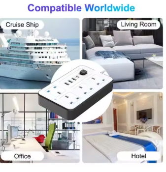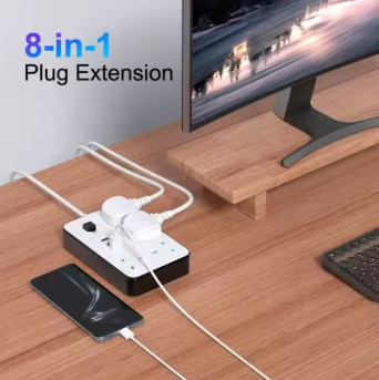 - 3 meters 8 IN 1 Power Extension Cord: 4 power sockets, 3 USB and 1 type C POD charging slot in one extension lead enable you to power up 8 devices simultaneously, which is ideal for charging multiple devices at home, office, garage